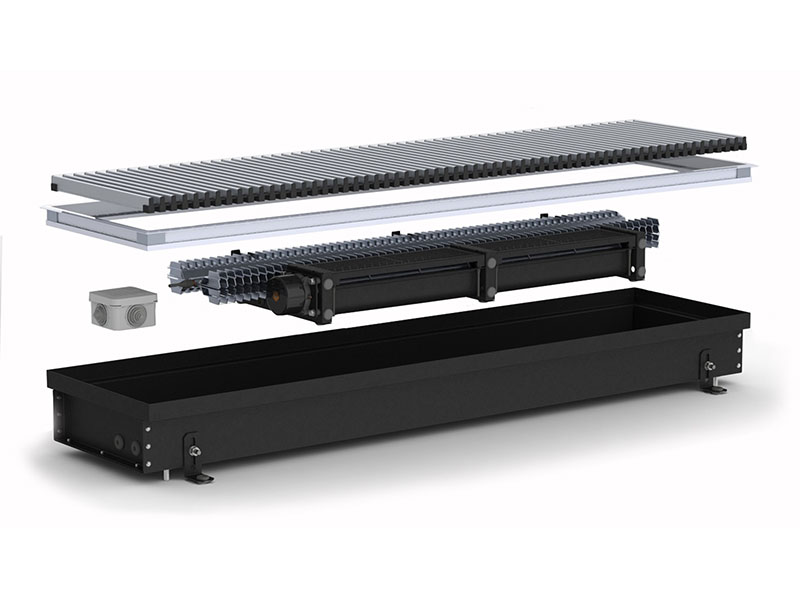 Первый электрический внутрипольный конвектор с вентилятором представленый на рынке Украины с глубиной 90 мм.