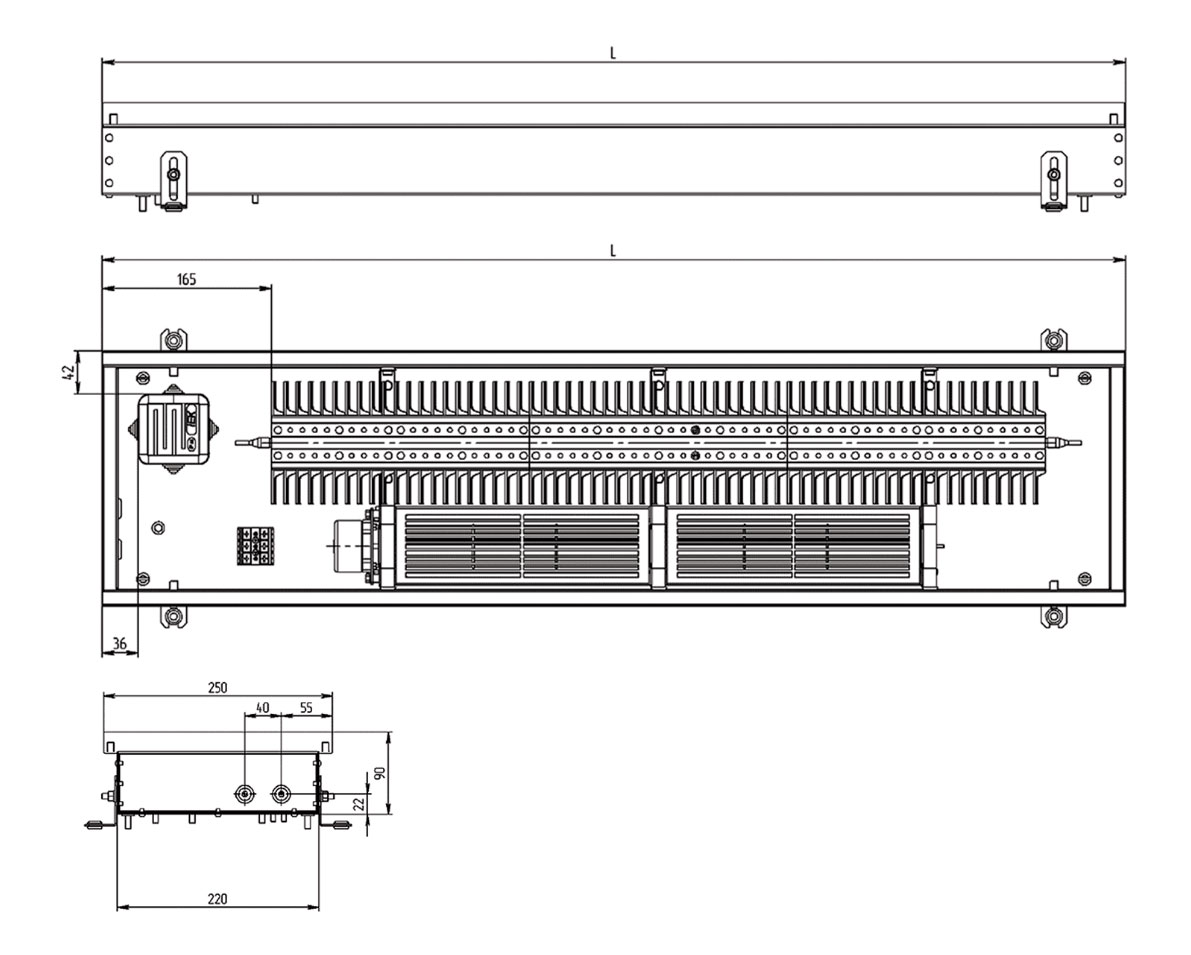 | Длина конвектора, мм | 1000 | 1250 | 1500 | 1750 | 2000 | 2250 | 2500 | 2750 | 3000 |