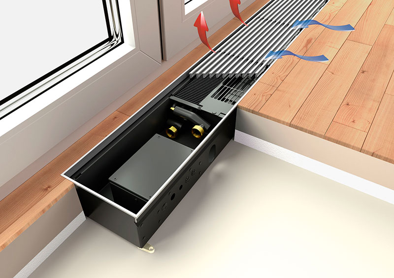 Встроенные в пол конвектора отопления Керми используются для создания оптимального теплового комфорта в помещениях с панорамными окнами и большими площадями остекления. Отопительный прибор, который спрятан в полу помогает сохранить прекрасный вид из окна, а, так же, позволяет легко комбинировать его в любом дизайне.