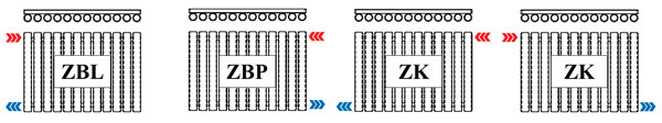 Предусмотрено боковое и нижнее подключение к системе отопления. Вариации бокового подключения относятся к стандартным и входят в стоимость приборов. Вариации нижнего подключения относятся к нестандартным и не входят в стоимость прибора.