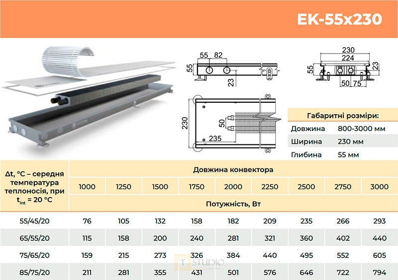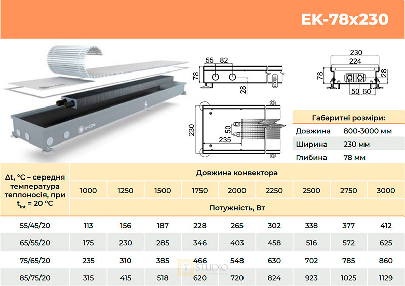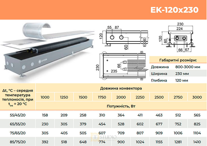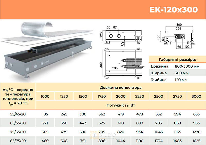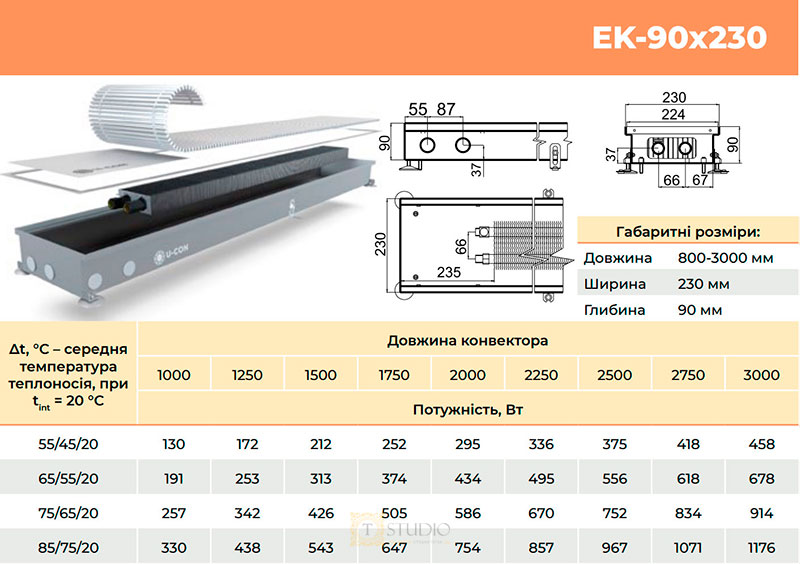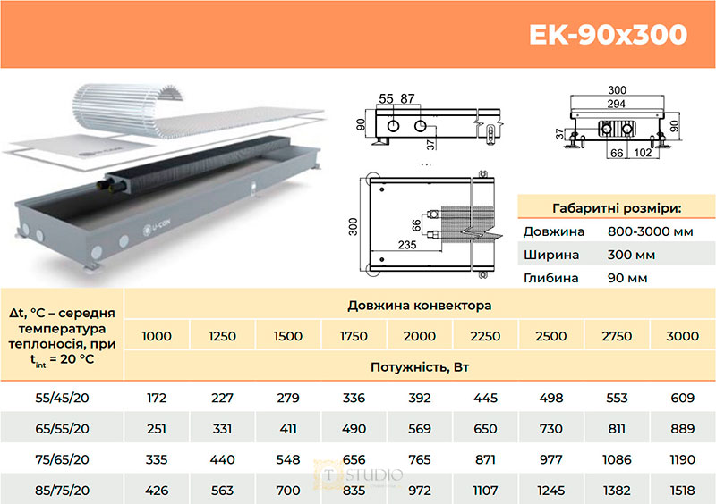 Характеристики товара U-CON EK внутрипольный конвектор без вентилятора с естественной конвекцией