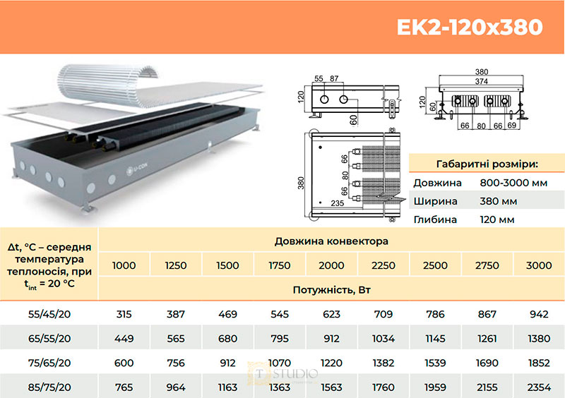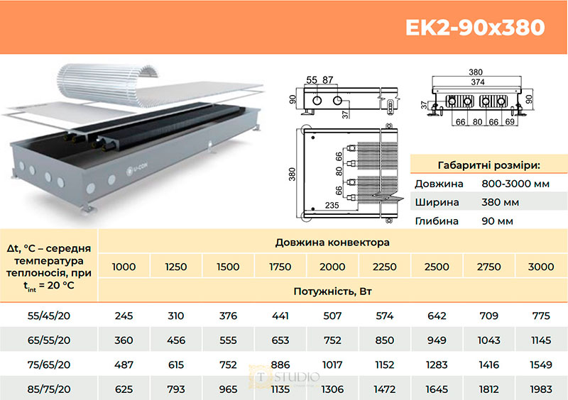 Характеристики товара U-CON EK2 внутрипольный конвектор без вентилятора с естественной конвекцией