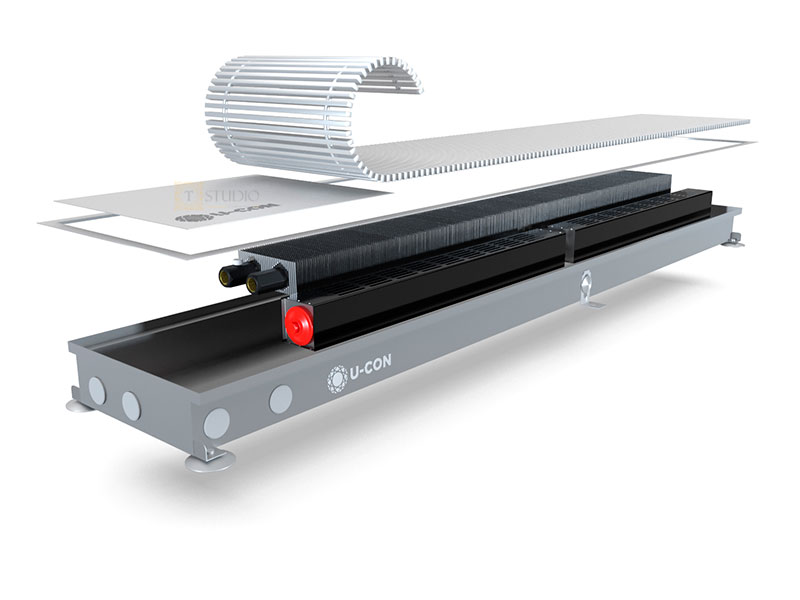 U-CON (Ю-КОН) VK Mini внутрипольный конвектор с вентилятором с принудительной конвекцией - это встроенный в пол отопительный прибор, предназначенный для отопления помещения и создания тепловой завесы при панорамном остеклении. Имеет глубину от 67 до 78 мм и один теплообменник.
