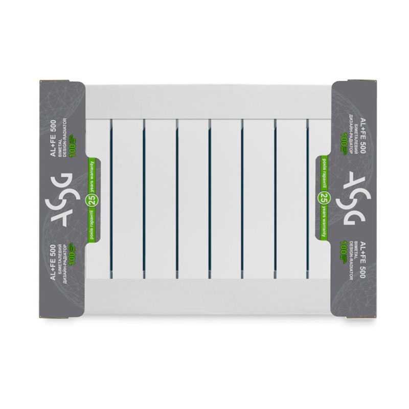 Біметалічний радіатор ASG виконується в таких розмірах: висота 300 і 500 мм, ширина 100 мм, довжина 80 мм.