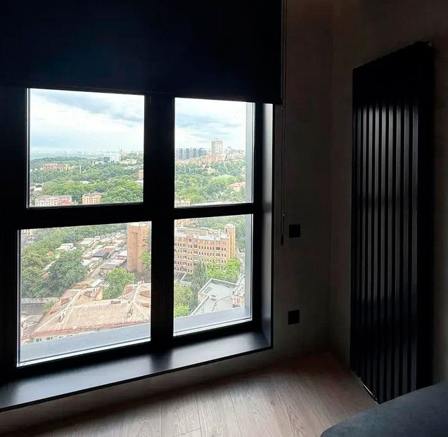 Якісний вертикальний радіатор, трохи громоздкий. Дуже кидається в очі. Але гріє добре.