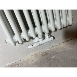 Для вертикальних трубчастих та вертикальних дизайнерських батарей, як ми вже говорили вище, спосіб підключення можна вибирати. Але найбільш затребуваним і, на нашу думку, обґрунтовано є один із видів нижнього підключення без вентильної вставки. Таке підключення дає змогу розмістити регулятор температури на доступному рівні.