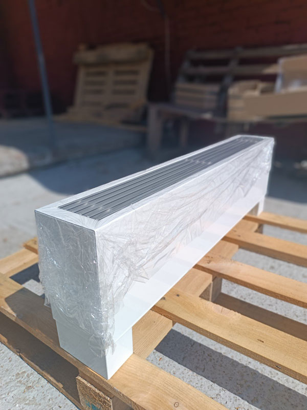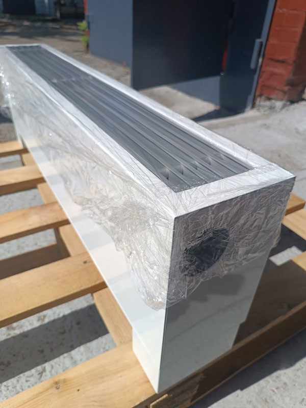 Корпус приладу виготовлений із цільного листа металу та не містить швів та з'єднань на лицьовій частині. Підключення приховано в ніжці конвектора.