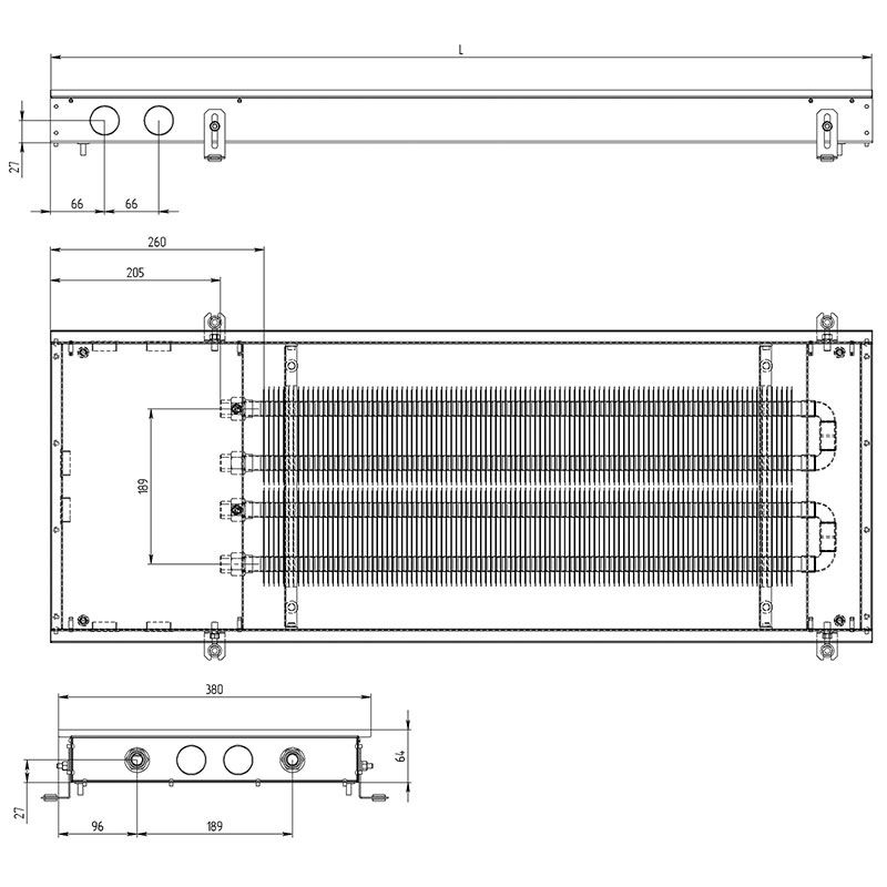 Внутрішньопідлоговий конвектор Каррера (Carrera M2) без вентилятора в базовій комплектації складається з:
