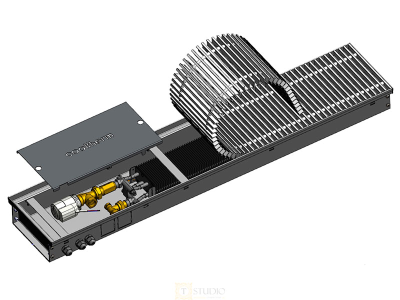 Внутрішньопідлоговий конвектор Cooltherm Hottherm з природною конвекцією - це вбудований в підлогу опалювальний прилад з мідно-алюмінієвим теплообмінником у сталевому коробі.