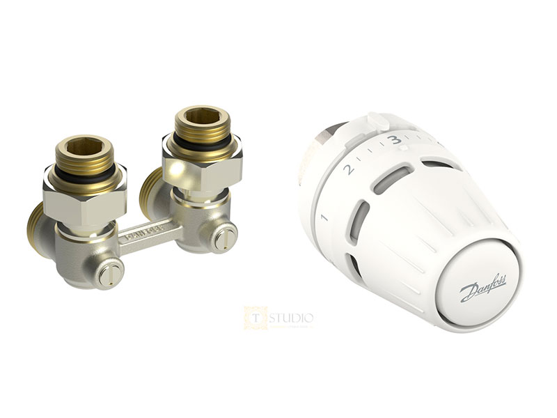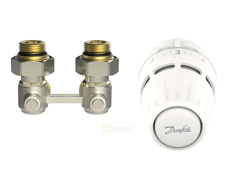 Комплекти Danfoss для нижнього підключення радіаторів застосовуються в горизонтальних двотрубних системах водяного опалення квартир, приватних будинків, комерційних установ.