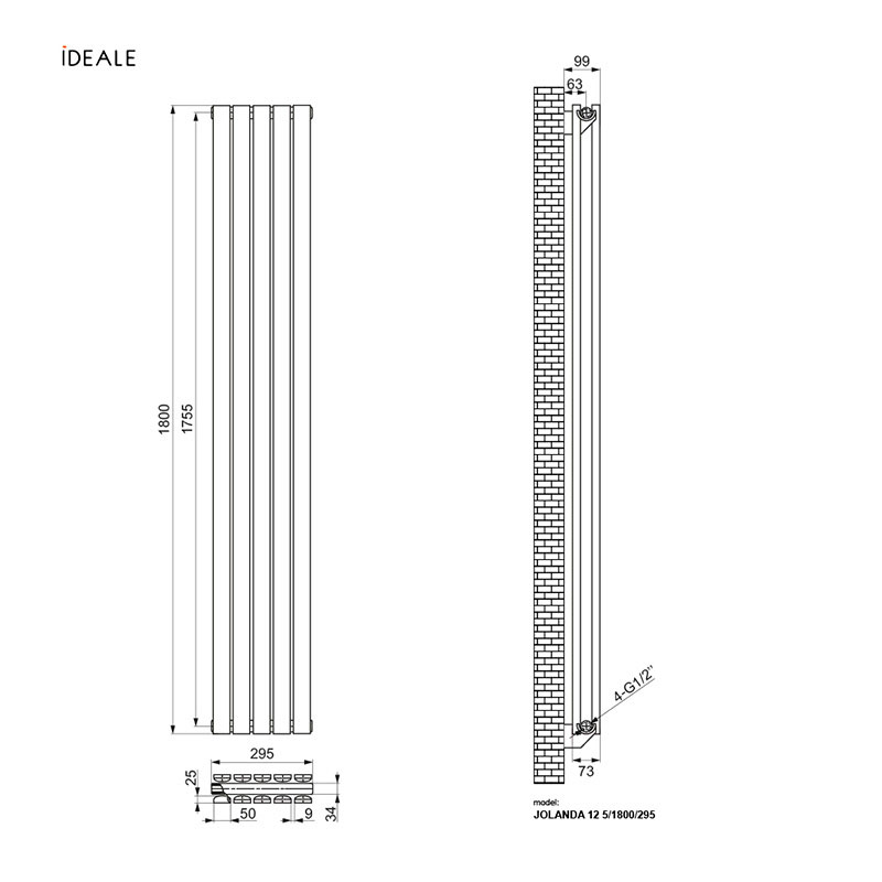 Вертикальний радіатор Ideale Jolanda Double