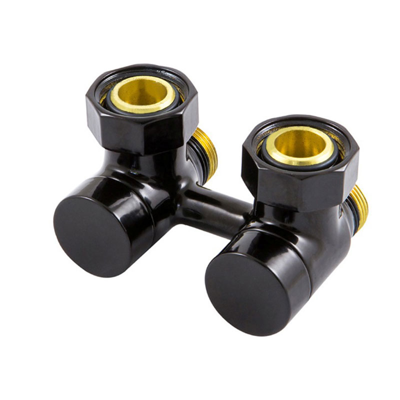 Schlosser Exclusive вузол нижнього підключення кутовий чорний (601000017.RAL90051) - це арматура для нижнього підключення радіатора опалення з міжосьовою відстанню 50мм.