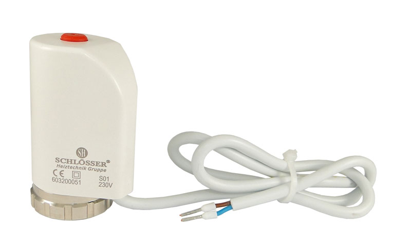 Сервопривід Schlosser нормально закритий, 230V - пристрій призначений для регулювання потоку теплоносія через термостатичний клапан. Найчастіше використовуються для керування конвекторами опалення, системами водяної теплої підлоги, рідше радіаторами опалення.