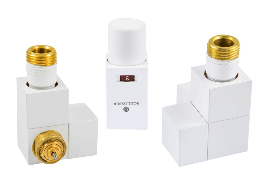 Опис товару Комплект радіаторний термостатичний осьовий Schlosser Square Білий