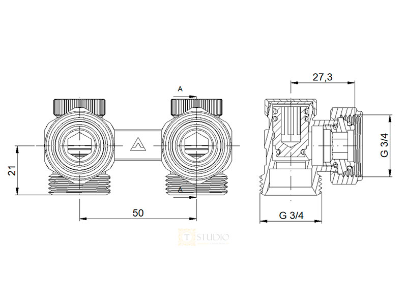 Комплекти кранів Type V можуть бути представлені в кутовому або прямому виконанні. Розмір з'єднання ВР 3/4 x ЗР 3/4.